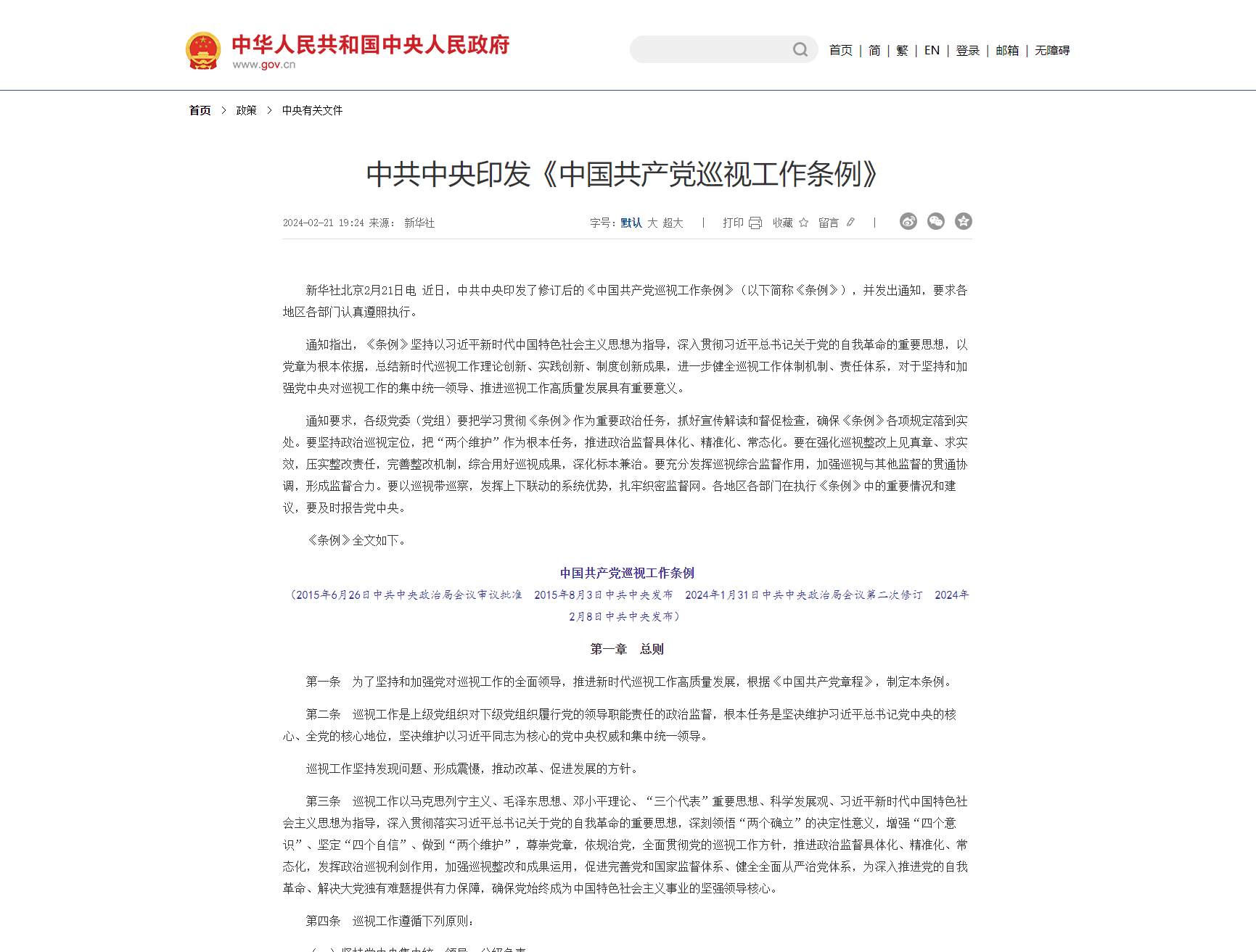 中國共產(chǎn)黨黨內(nèi)法規(guī)執(zhí)行責任制規(guī)定(試行)(2019年8月30日中共中央政治局會議審議批準2019年9月3日中共中央發(fā)布) 第一條為了提高黨內(nèi)法規(guī)執(zhí)行力,推動黨內(nèi)法規(guī)全面深入實施,根據(jù)《中國共產(chǎn)黨黨內(nèi)法規(guī)制定條例》,制定本規(guī)定。第二條各級黨組織和全體黨員負有遵守黨內(nèi)法規(guī)、維護黨內(nèi)法規(guī)權(quán)威的義務。各級黨組織和黨員領導干部必須增強“四個意識”、堅定“四個自信...